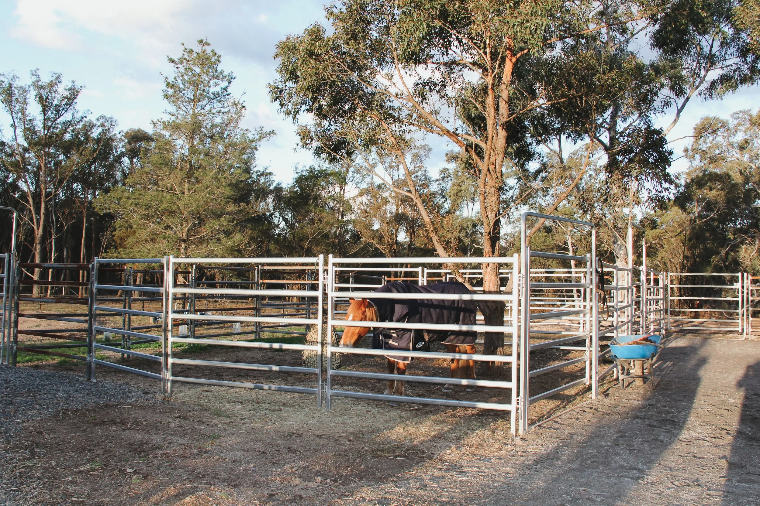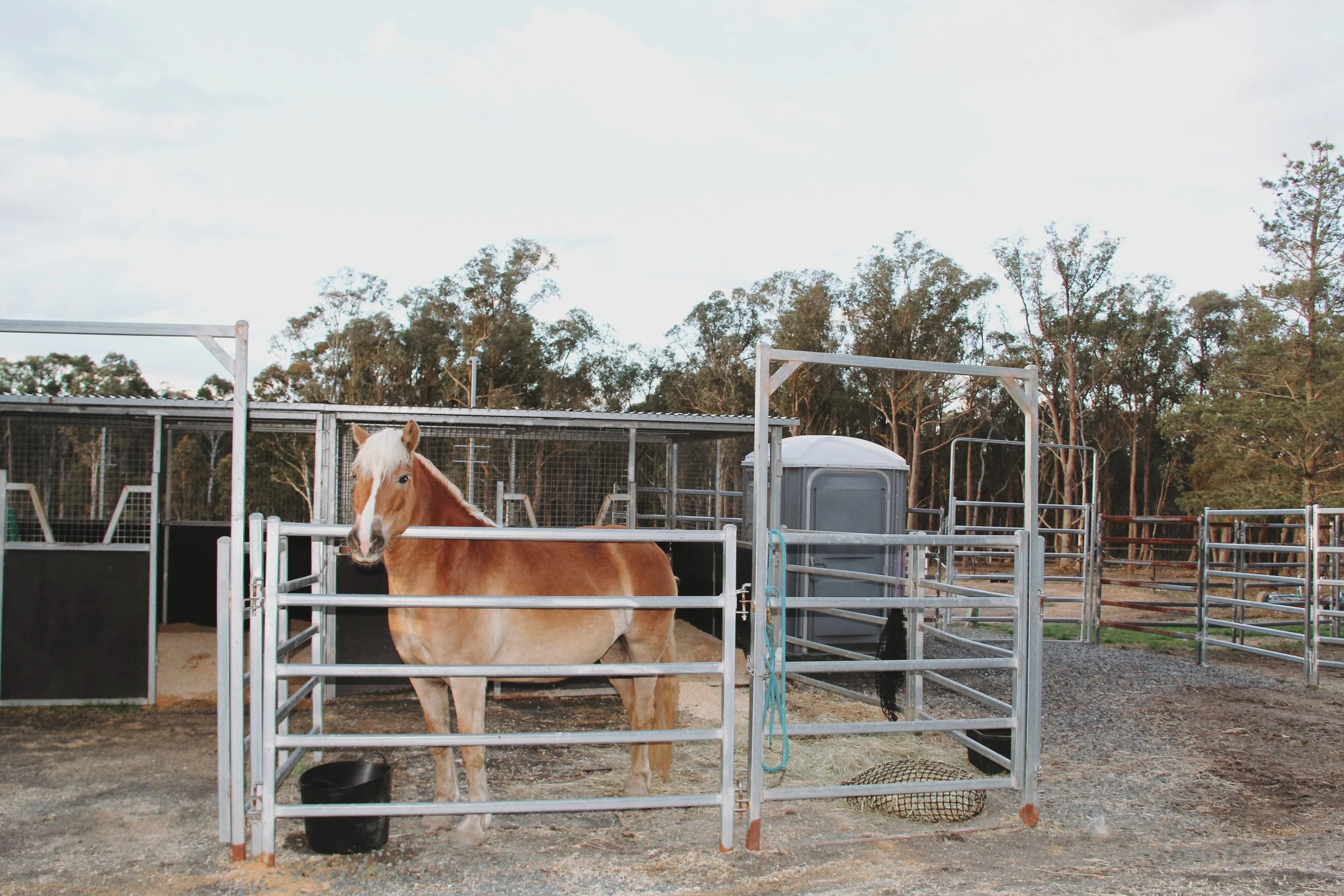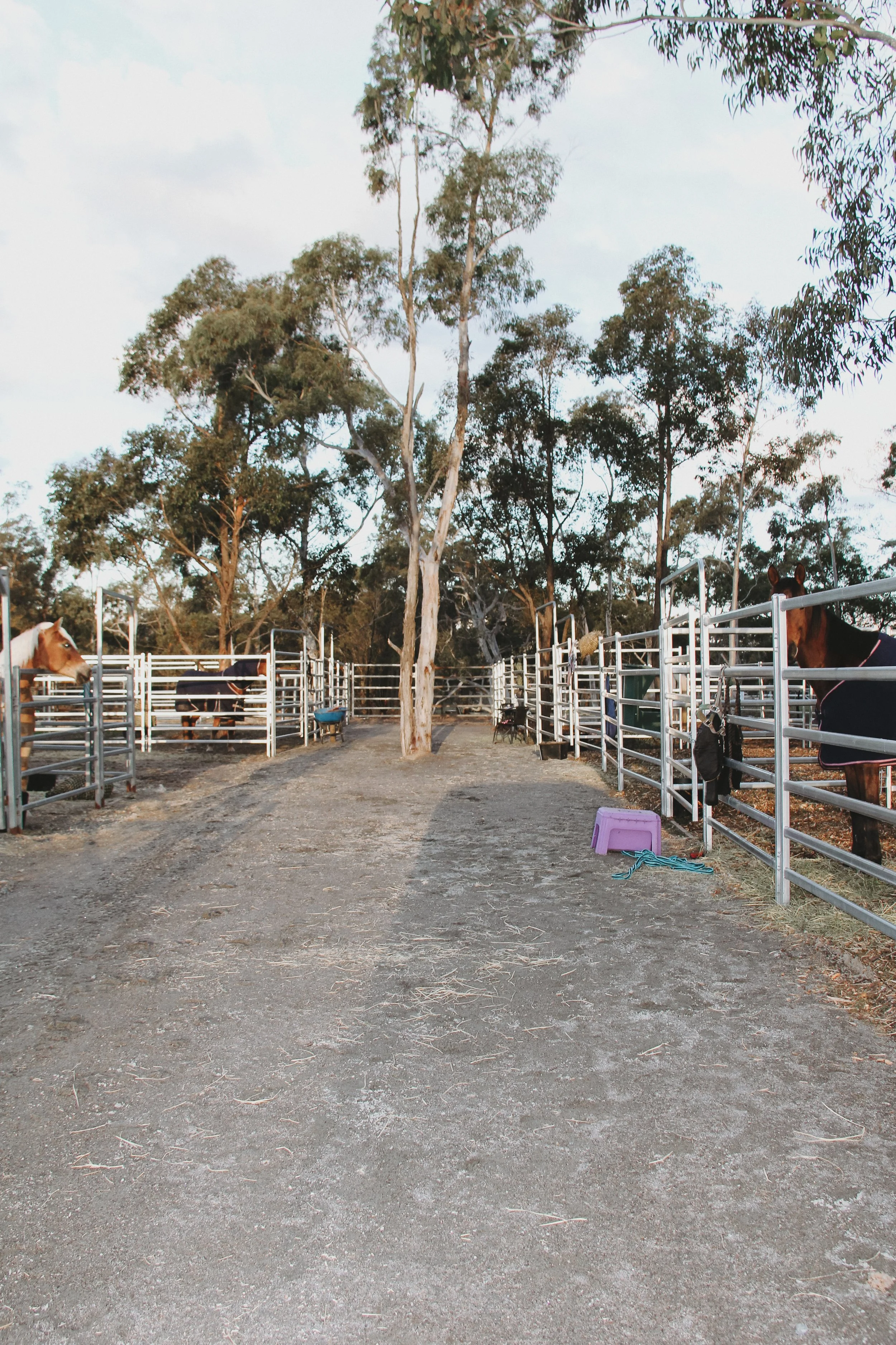 The yards have a natural eucalyptus mulch footing, offering a safe, cushioned surface that’s gentle on horses during their stay.