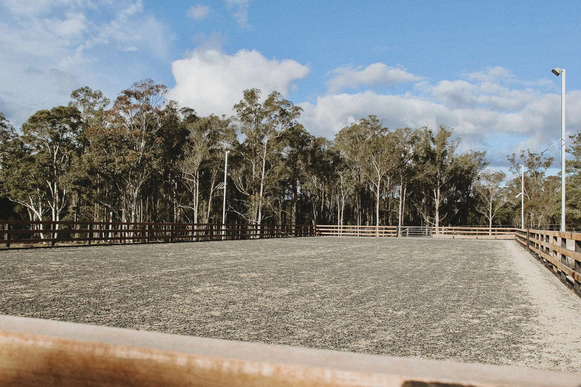 Our arena is brand new and built for performance, our 60 x 20 outdoor arena is designed to give both horses and riders the best experience. Featuring brickies, river sand and rubber footing for comfort and stability, plus flood lights for evening sessions and a spectator viewing platform.